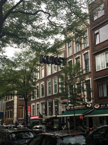 Monday morning started with an 8:45 meet time and a tram trip to Mainstudio, which is a graphic design studio founded 2005 by Edwin van Gelder. His designs work heavily with a grid system and the projects he works on are often in book format which I really enjoy. Getting to visit studios and hear practicing designers talk about their projects and process and just seeing what their studios look like is often one of the more interesting parts of these trips. After the studio visit we went to the Stedelijk Museum which I thoroughly enjoyed. The museum had a lot of exhibitions going on and each was unique from the others. I started in the basement which was a huge room with a timeline of paintings along the wall, including a surprising number of women, with furniture and sculptures set up in the middle. I probably spent too long in the basement looking at the different paintings and posters.